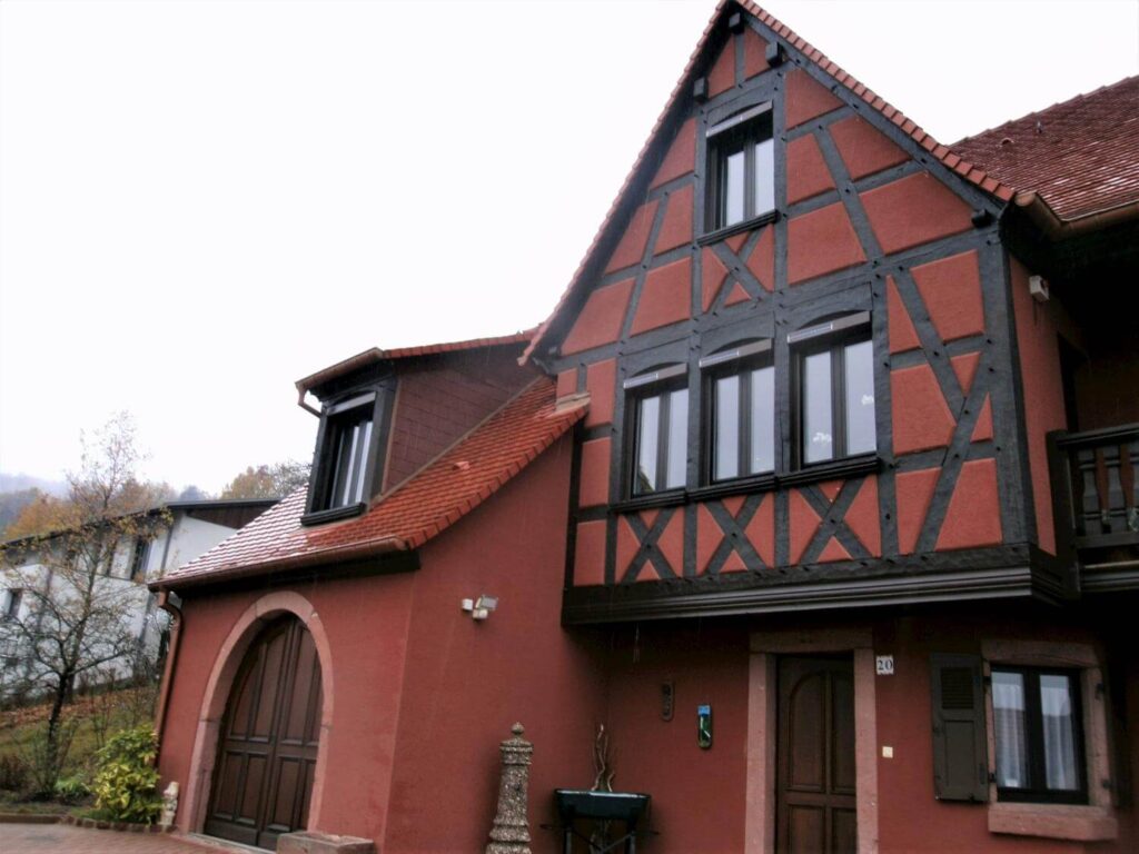 Pour cette maison en périphérie de Guebwiller, notre client voulait absolument préserver l’esprit traditionnel de sa maison à colombages. Nous avons donc installé des fenêtres en PVC sombre qui s’intègrent respectent les spécificités de son habitation.